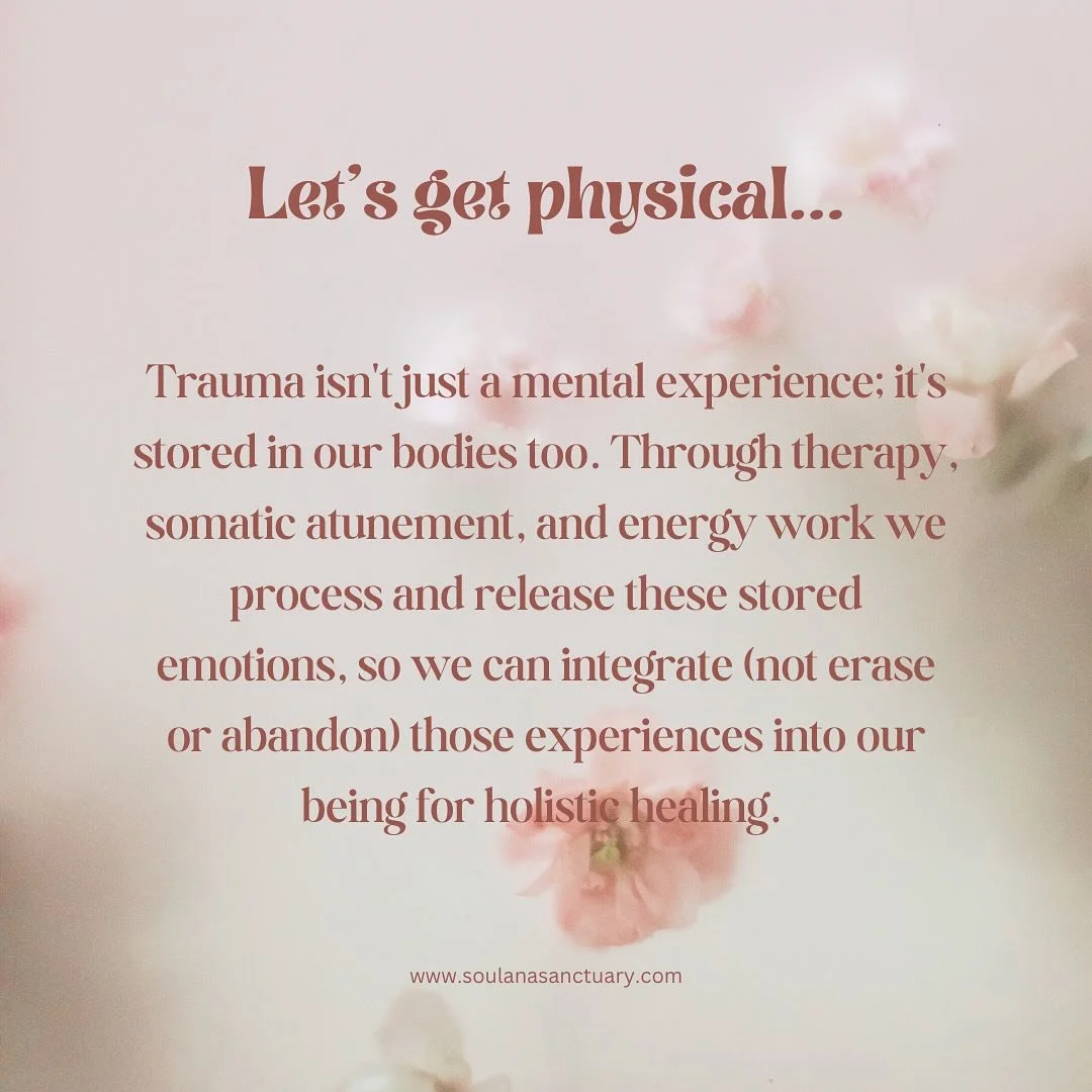 At Soulana Sanctuary, I offer a safe, supportive space to heal trauma, reconnect with the wisdom of your body, and return to your most authentic, empowered self. Through somatic therapy, nervous system regulation tools, and mind-body healing practices, we gently unlearn limiting beliefs, release stored stress and trauma, and build a deeper, more compassionate connection with yourself.